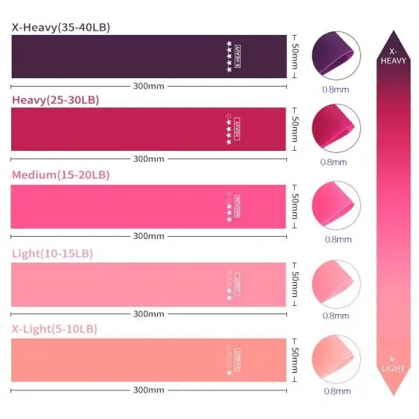 Odporové pásy pro ženy jsou k dispozici v 5 různých úrovních odporu: lehký, extra lehký, střední, těžký a extra těžký, což umožňuje snadno najít pás s ideálním napětím pro každý cvik. Naše extra lehké a lehké pásy jsou skvělé pro začátečníky, zatímco střední, těžké a extra těžké pásy jsou určeny pro pokročilejší a náročnější posilování. Tato sada odporových pásů je běžně používána pro cvičení a fitness k odstranění fyzické únavy. Pravidelný trénink s odporovými pásy může zvýšit svalovou hmotu a vytvořit krásnou postavu. Navíc pro osoby se svalovými zraněními mohou pásy pomoci při zotavení.