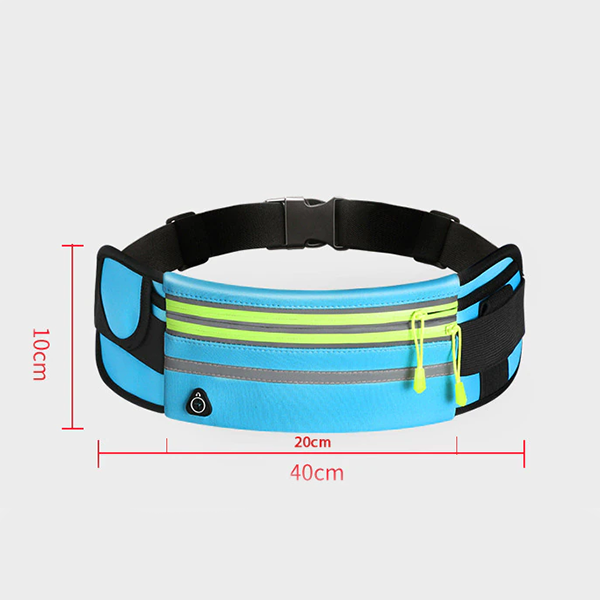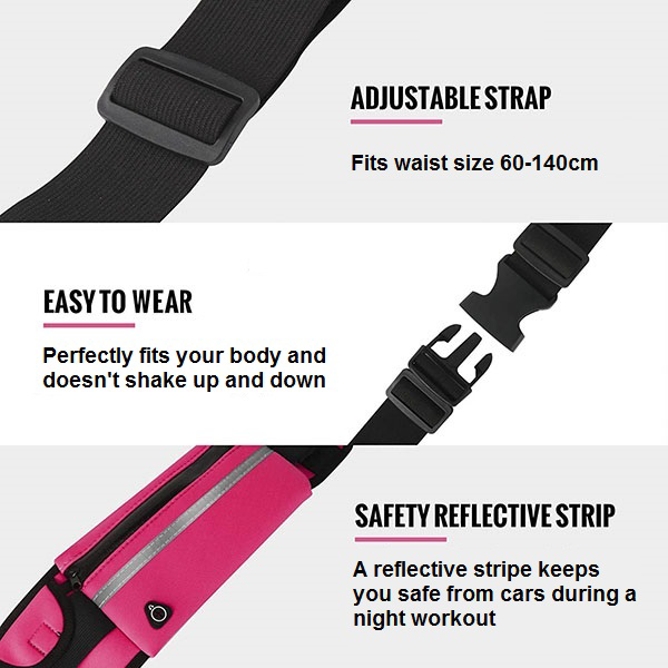Naše běžecká ledvinka má nastavitelný popruh, který snadno přizpůsobíte velikosti svého pasu. Na přední straně je také reflexní pruh, který při osvětlení ve tmě zvyšuje vaši viditelnost a chrání vás před nehodami.