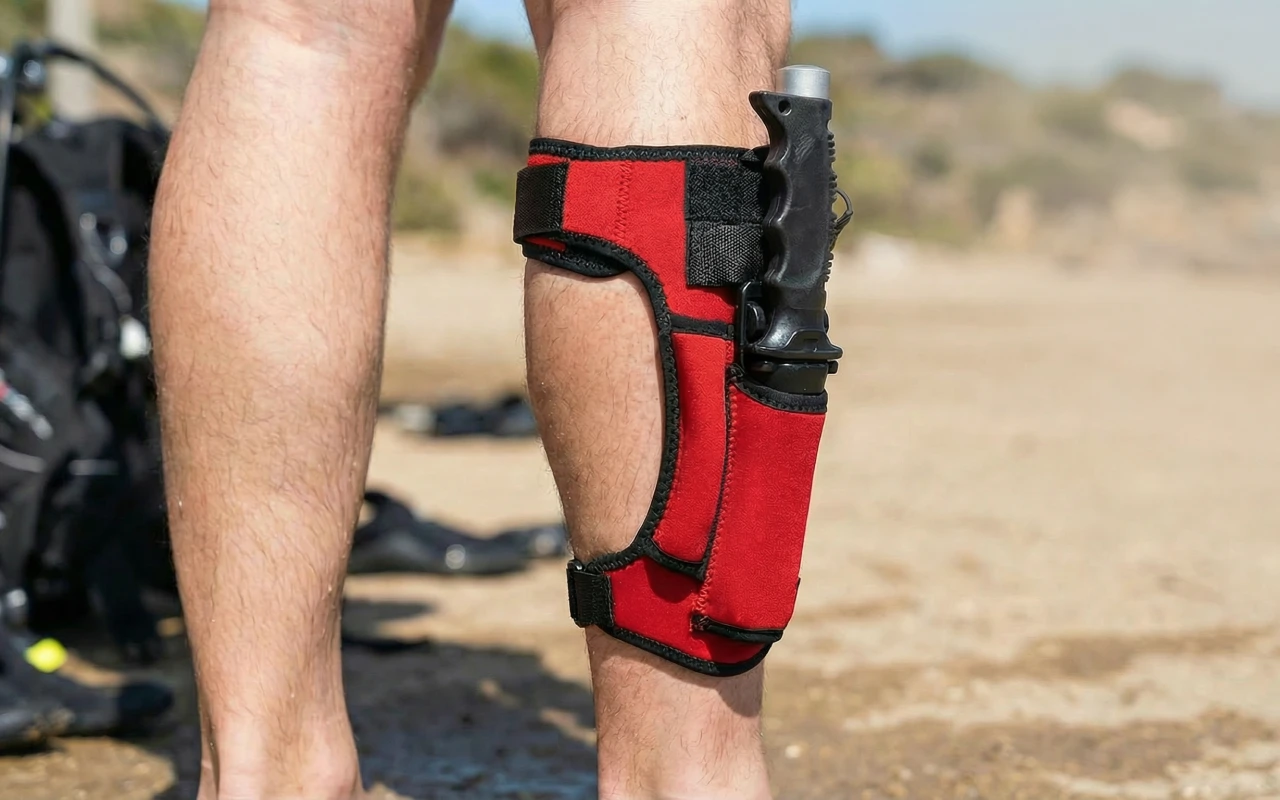 Jsem nový potápěč a pořád jsem zápasil s pouzdrem na opasku. Díky tomuto popruhu mám nůž na lýtku, je super snadné ho pod vodou chytit i znovu zacvaknout.
