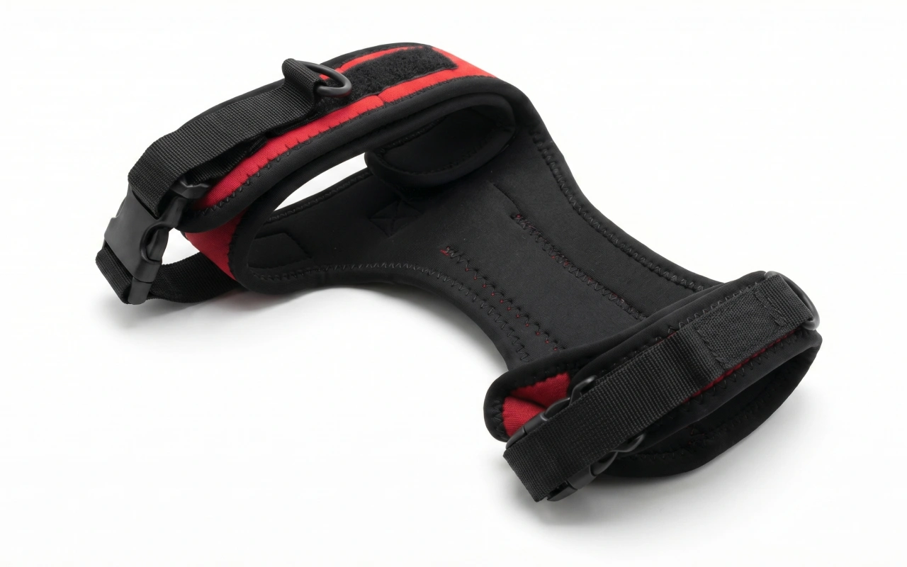 Líbilo se mi, jak snadno se dá nastavit mezi stehnem a lýtkem. D‑kroužek usnadňuje přetažení přes neopren, i když mám mokré ruce.