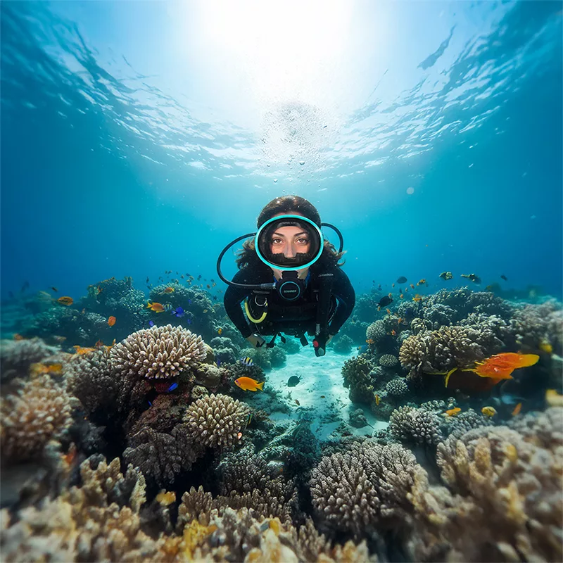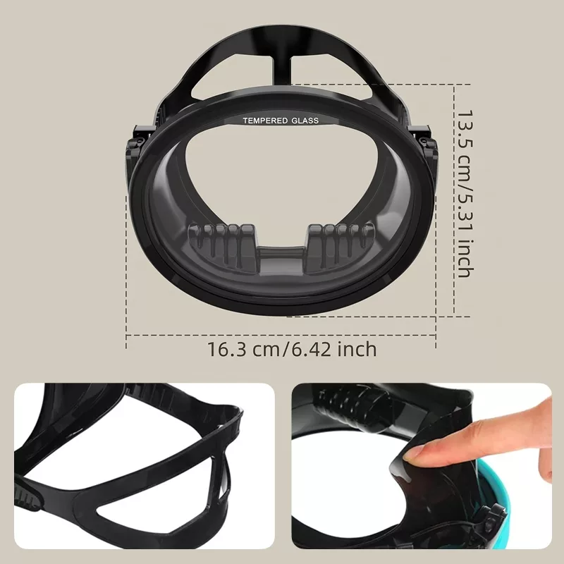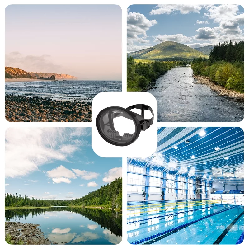 Uvidíte vše kolem sebe díky širokému jednodílnému sklu. Žádná slepá místa, takže vám žádný okamžik pod vodou neunikne.