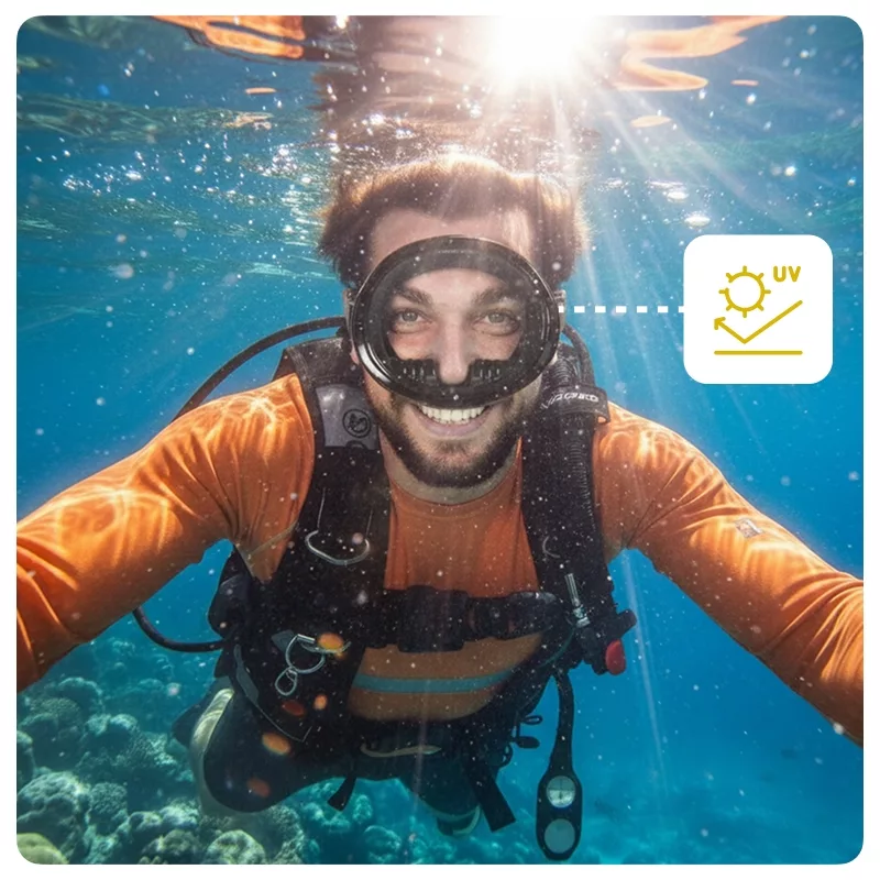 Konečně můžu plavat pod vodou bez obav z úniku vody! Zorník vždy zůstane čistý, snadno se čistí, jemný na mojí pokožce.