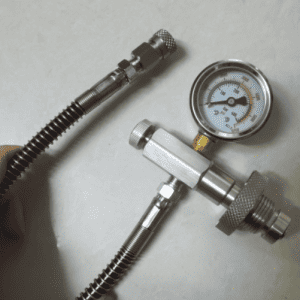 Naše hadice k lahvi pevně spojuje tlakové lahve, zajišťujíc nepřetržitý přísun kyslíku. Obsahuje pružinové ochrany, které chrání hadici před kroucením a nežádoucími smrštěními. To zvyšuje vaši bezpečnost tím, že zabraňuje náhodným únikům nebo přerušovanému přísunu vzduchu. S spolehlivým připojením se můžete bez obav soustředit na užívání si potápění.