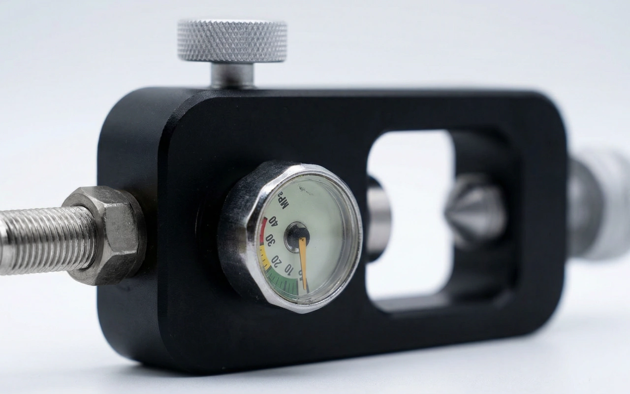 Adaptér Threo je vybaven odolným manometrem pro jasnou kontrolu tlaku. Vyhnete se přeplnění a při každém použití ochráníte své vybavení.