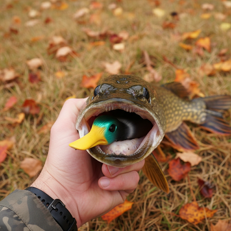 Už při prvním hodu jsem chytil tlustou štiku! Kachna se stále točila a stříkala, což bylo fakt zábavné. Určitě použiju znovu.