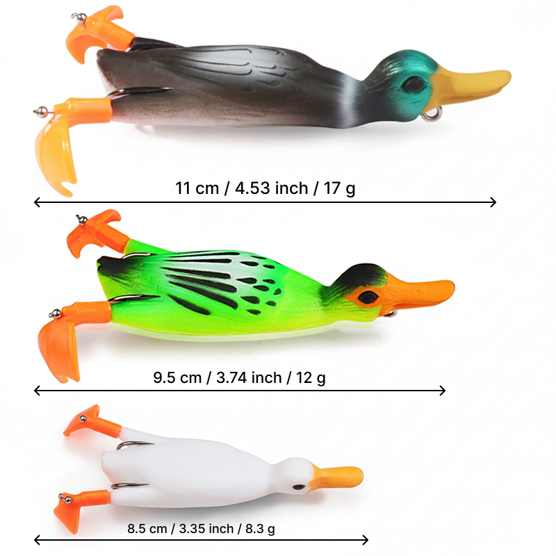 Návnady Threo Soft Duck se pohybují realisticky po hladině. Každý hod napodobuje skutečnou kořist, což přiláká i opatrné dravce. Ohebný materiál vydrží ostré zuby i silné útoky. Ulovte více štik, okounů nebo pstruhů za kratší dobu.