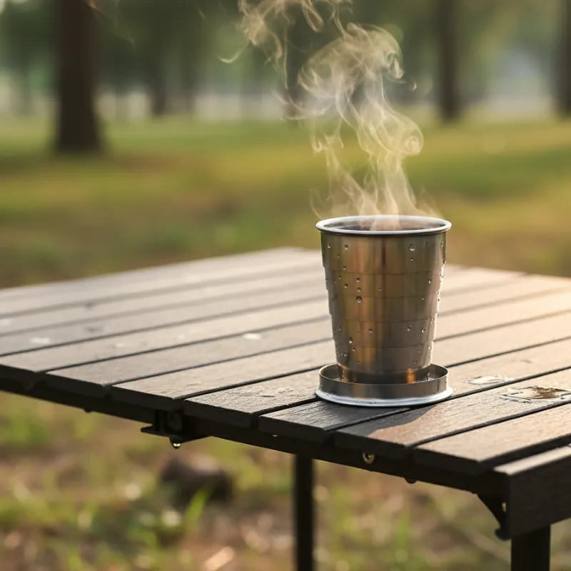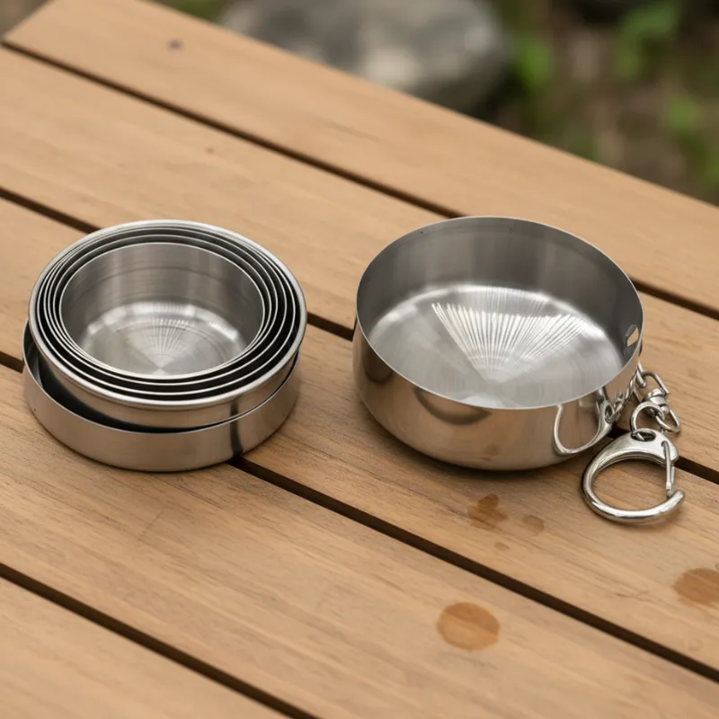 Přesně správná velikost na ranní kávu ve stanu. Složí se naplocho a ocel je pevná.