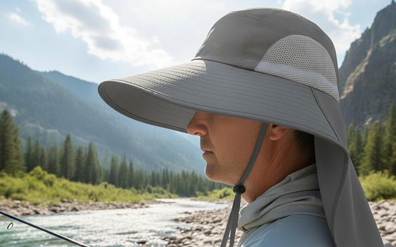 Rybaření je teď mnohem lepší. Klopa na krk chrání před sluncem a vůbec se nepotím. Po dešti voda rychle steče.