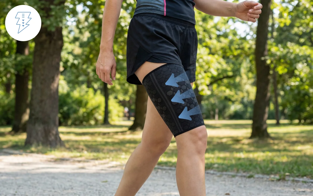 Jemný tlak podporuje rychlejší průtok krve a urychluje regeneraci. Po tréninku nebo dlouhém stání se budete cítit svěží mnohem dříve.