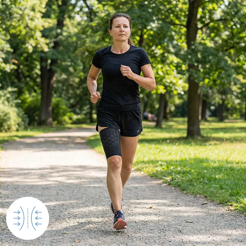 Každý krok je snadnější, když jsou svaly podepřené. Kompresní návlek na stehno Threo přináší pohodlí při sportu, v práci i při každodenních činnostech. Je pružný a lehký, takže se vejde pod jakýkoli styl oblečení. Užívejte si stabilní pohyb a méně rozptýlení každý den.