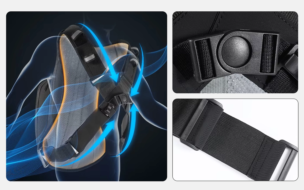 Chytré popruhy obepínají tělo a dobře podporují vaši postavu. Zůstáváte vyrovnaní a stabilní i na nerovných cestách.
