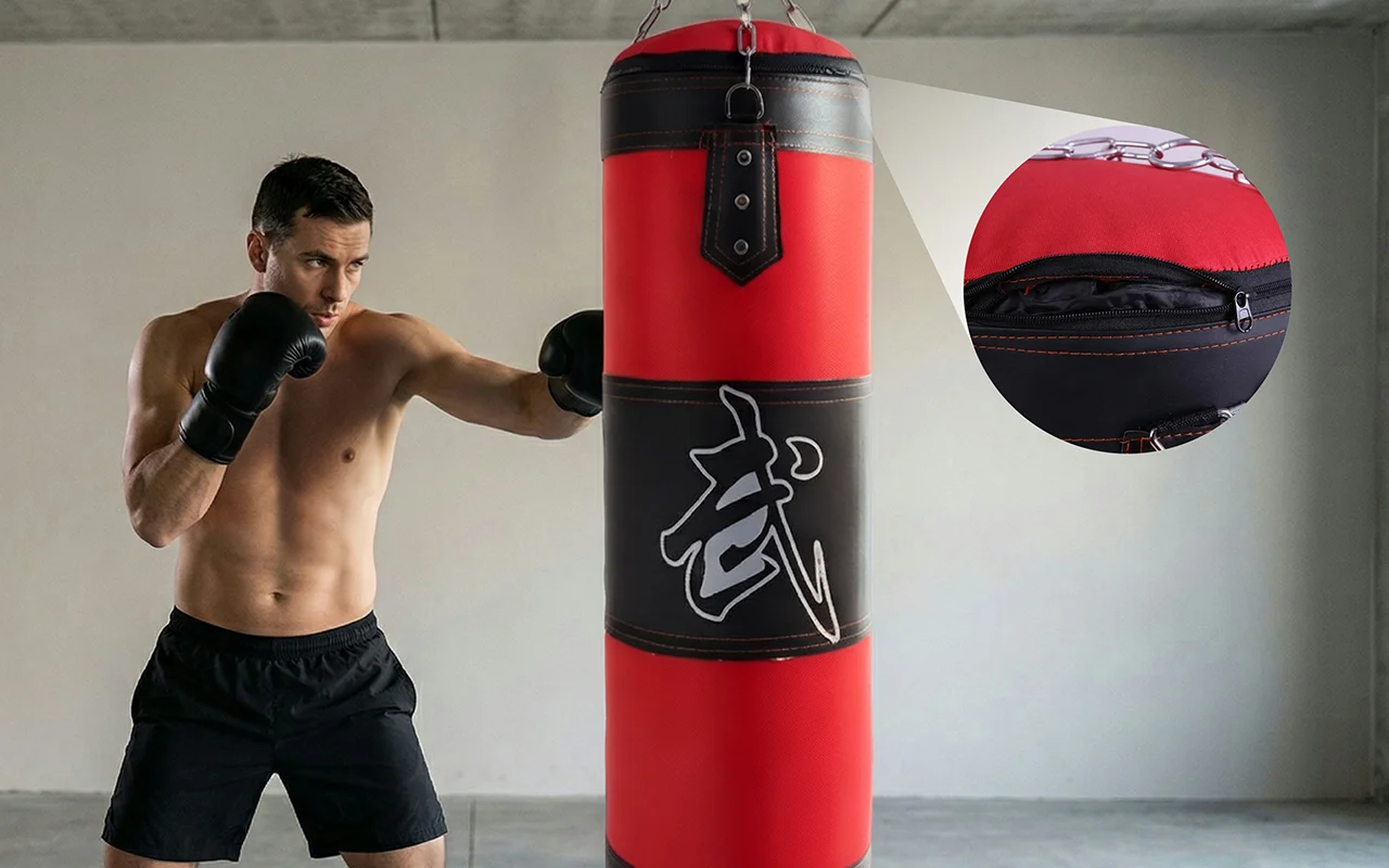 Pytel mám zavěšený na balkoně a trénuji před prací. Plátno je odolné, středový polštář šetří ruce a výměna výplně trvá jen pár minut.