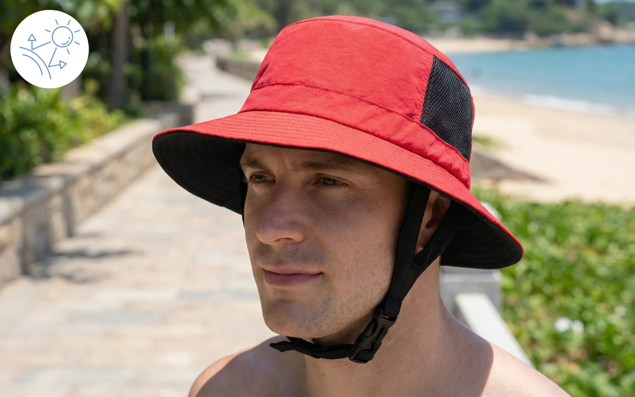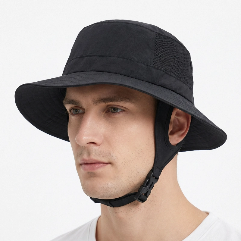 Používám ho na rybářské výlety s kamarády. Podšívka s ochranou UPF chrání krk i uši před spálením a nastavitelná šňůrka zabrání tomu, aby klobouk ulétl.