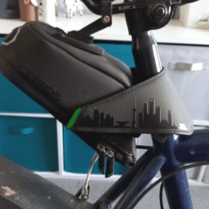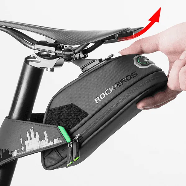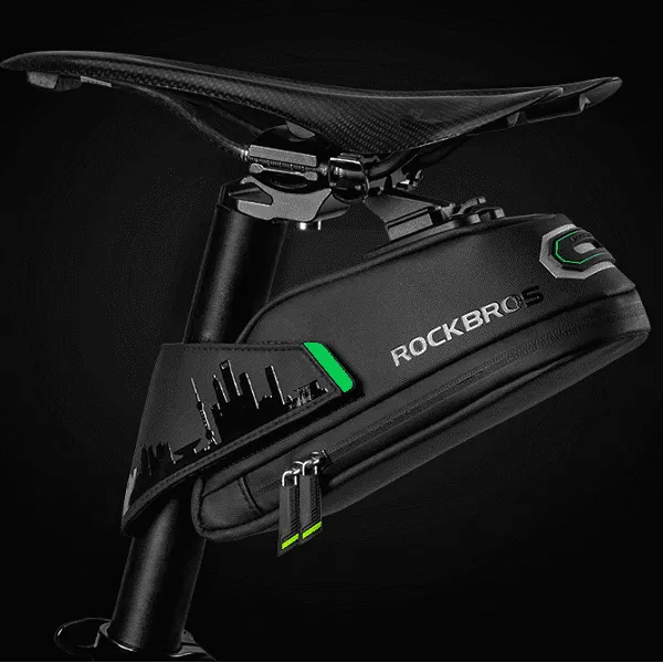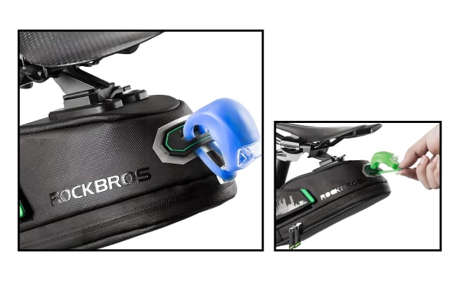 Naše cyklistická brašna má gumový popruh, který umožňuje připevnit světlo na sedlo kola pro zvýšení viditelnosti a bezpečnosti na silnici za špatných světelných podmínek.