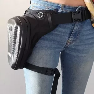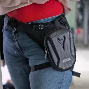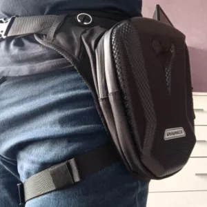 Tato nožní taška je skvělá na jízdy. Je odolná a voděodolná, ideální pro pohodlné nošení nezbytných věcí a zároveň dodává styl mému outfitu.