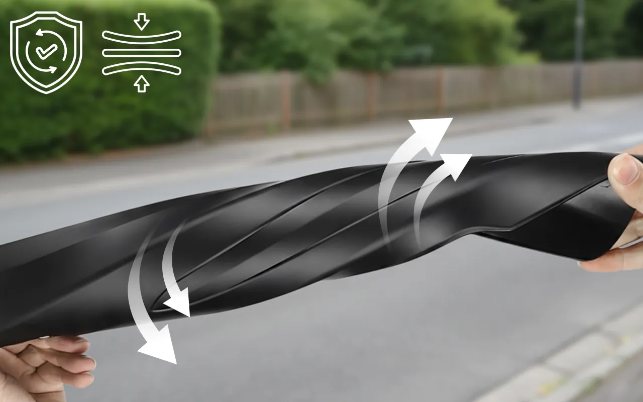Odolný materiál odolává poškrábání a praskání v náročném terénu. Vydrží časté používání v drsných podmínkách, což zajišťuje ochranu na mnoho sezón cyklistiky.