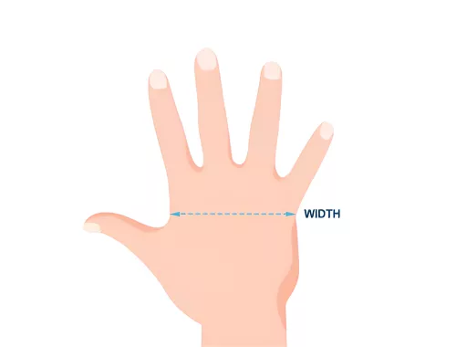 - 1. Natáhněte měřicí pásku přes nejširší část vaší dlaně.