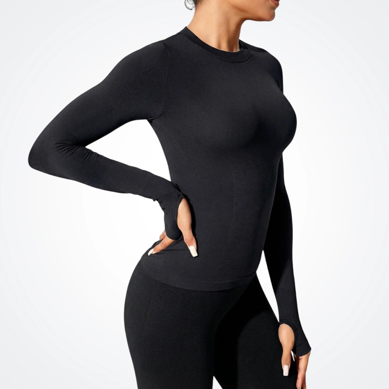 Dlouhé rukávy chrání paže před sluncem nebo drsným posilovacím vybavením. Cítíte se jistě a zakrytá v každé pozici i při každém pohybu uvnitř i venku.