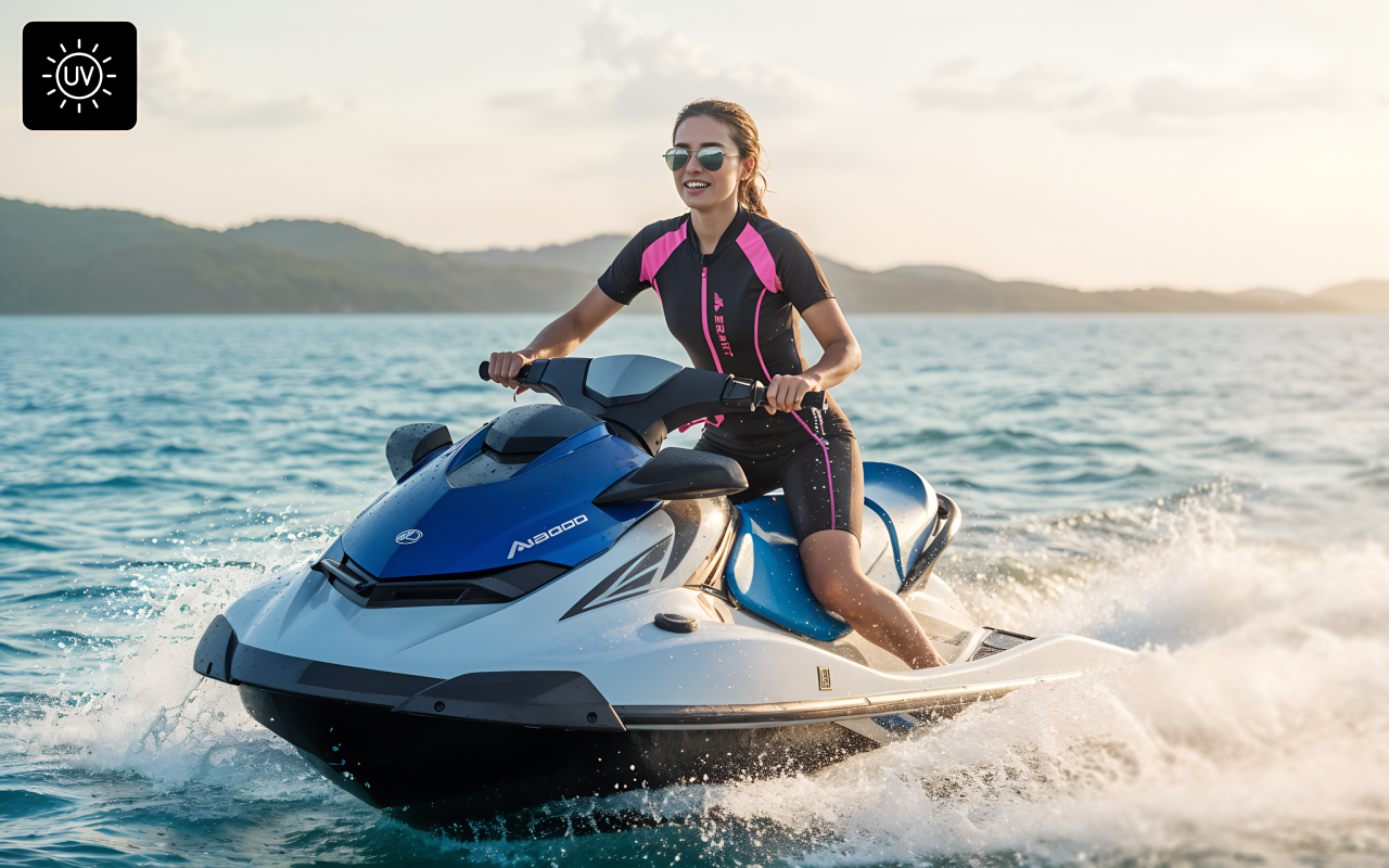 Oblek Threo chrání před silným sluncem a dráždivými látkami na pláži. Citlivé oblasti zůstávají zakryté, takže si můžete bezpečně užít slunění.