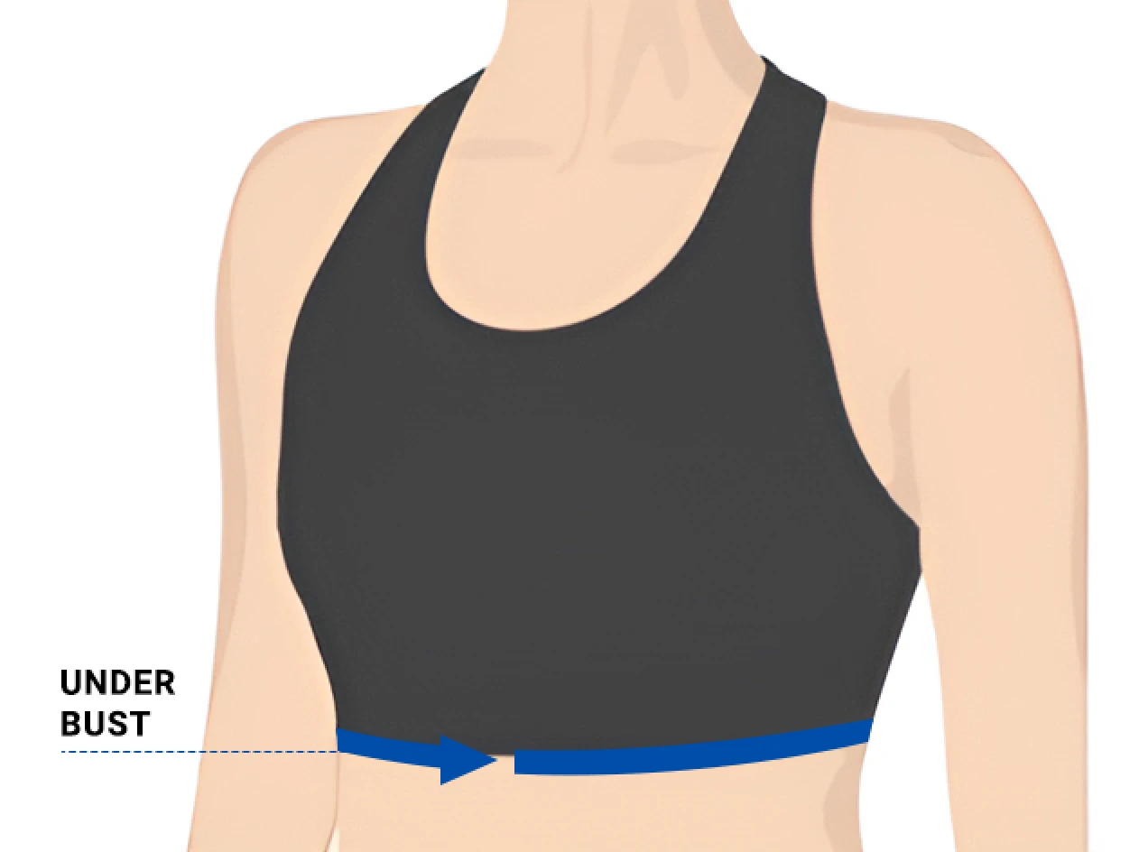 - 1. Omotejte měřicí pásku okolo hrudníku přímo a rovnoměrně pod prsy.