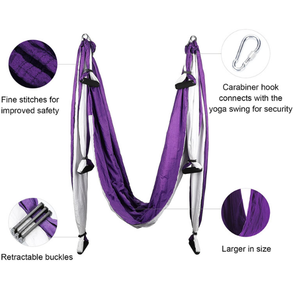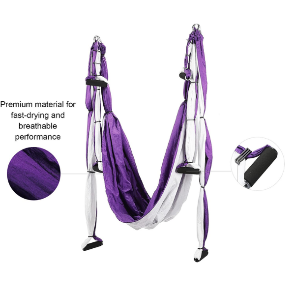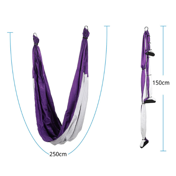 THREO Jógová houpačka zlepšuje vaše protažení a flexibilitu. Má jednoduchý design a umožňuje vám provádět různé typy vzdušných cvičení. Houpačka vypadá jako trapez a má vysokou nosnost. Jógová houpačka vám dává výhodu, že ji můžete nainstalovat kdekoliv chcete. Snižuje jakoukoli únavu během pozic s prohnutím zad. Houpačka je ideální pro širokou škálu jógových cvičení. Navíc ji můžete použít i při poraněné noze. Naše jógová houpačka pomáhá uvolnit bolest nebo tlak v krku, zádech a páteři a posiluje sílu rukou pomocí inverzní terapie.