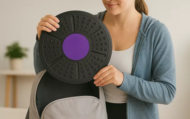 Náš yoga disk drží nohy bezpečně, zabraňuje sklouznutí a nehodám. To dodává sebevědomí a umožňuje vám soustředit se na trénink.